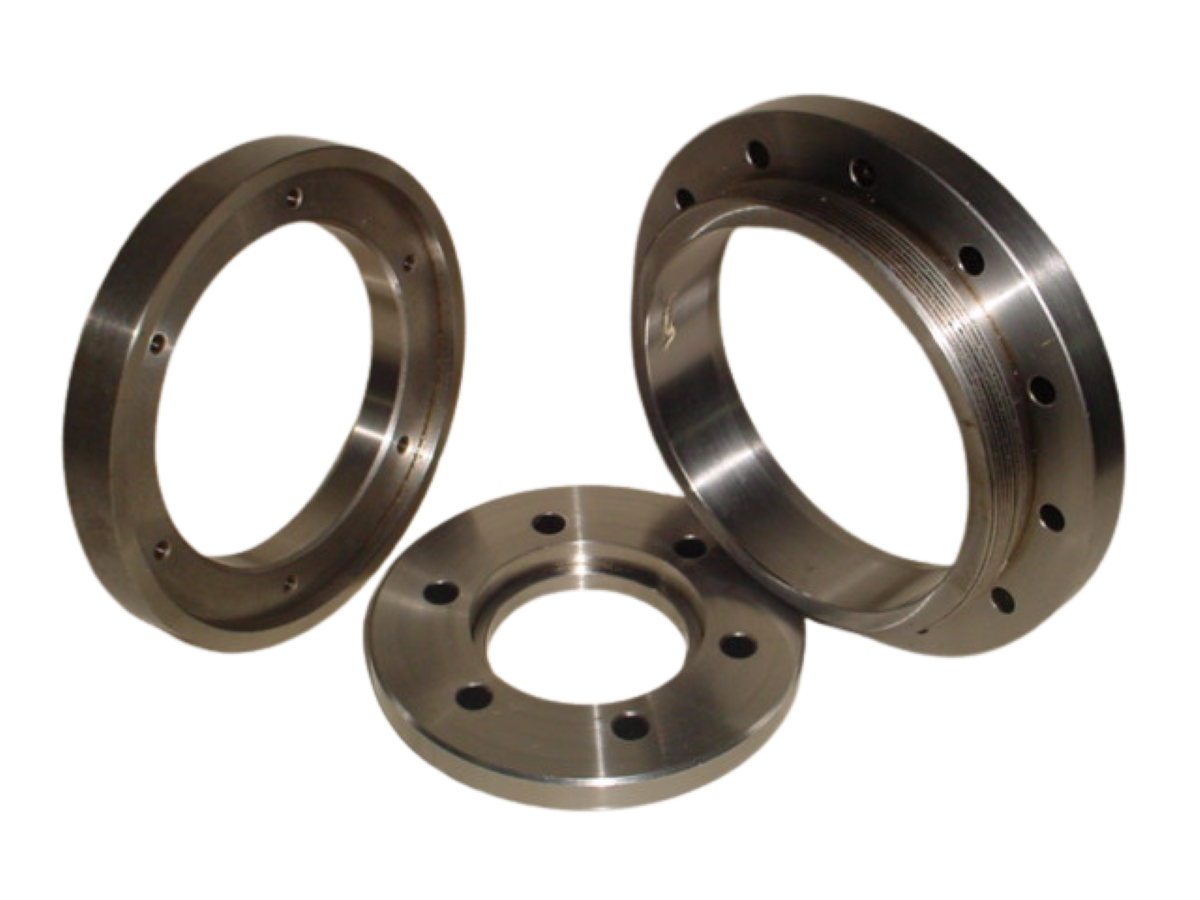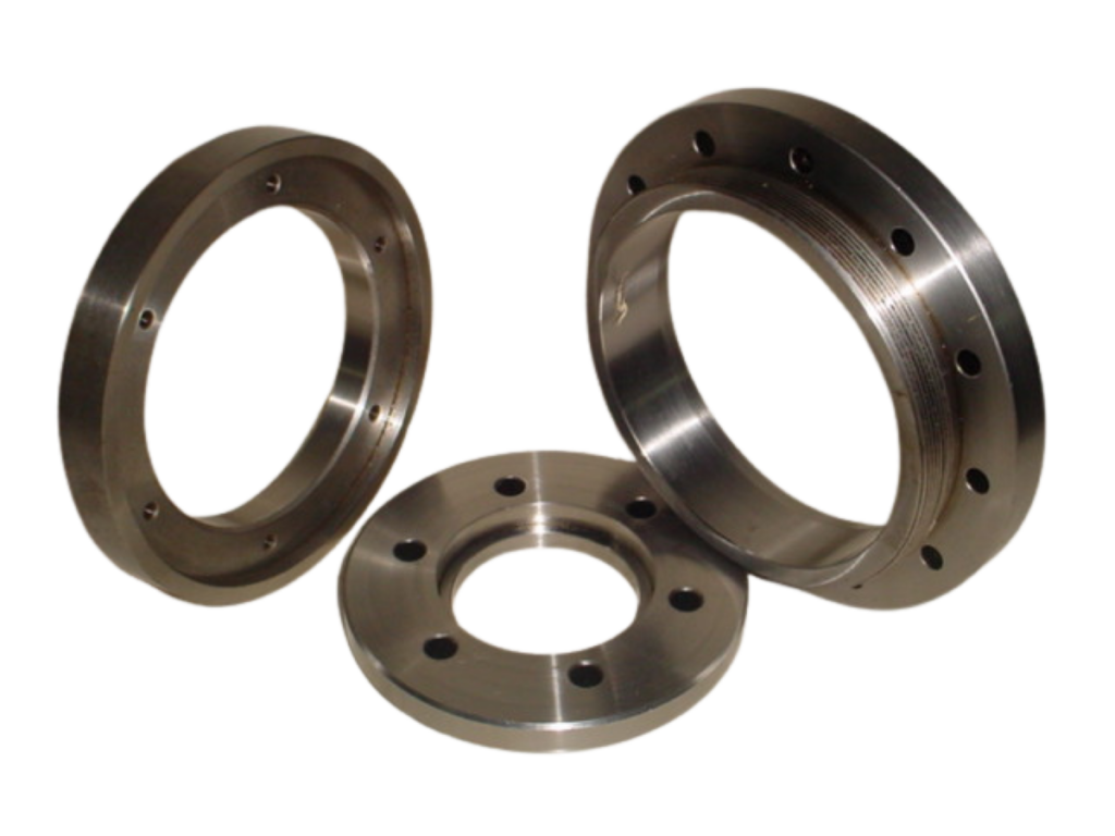 High-strength pipe flanges and precision bushings manufactured for industrial piping systems and heavy machinery applications.